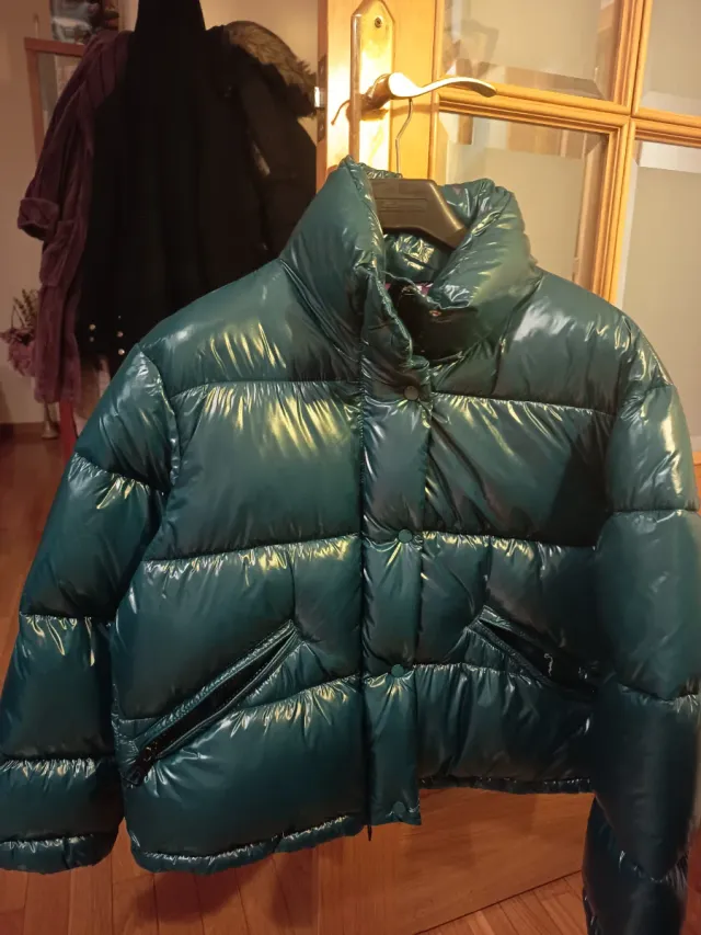 Plumífero corto verde brillante cremallera