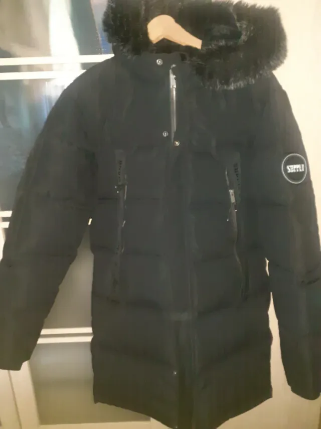 Detalles del productoAbrigo plumífero supply negro con detalles modernos.talla 13/15años