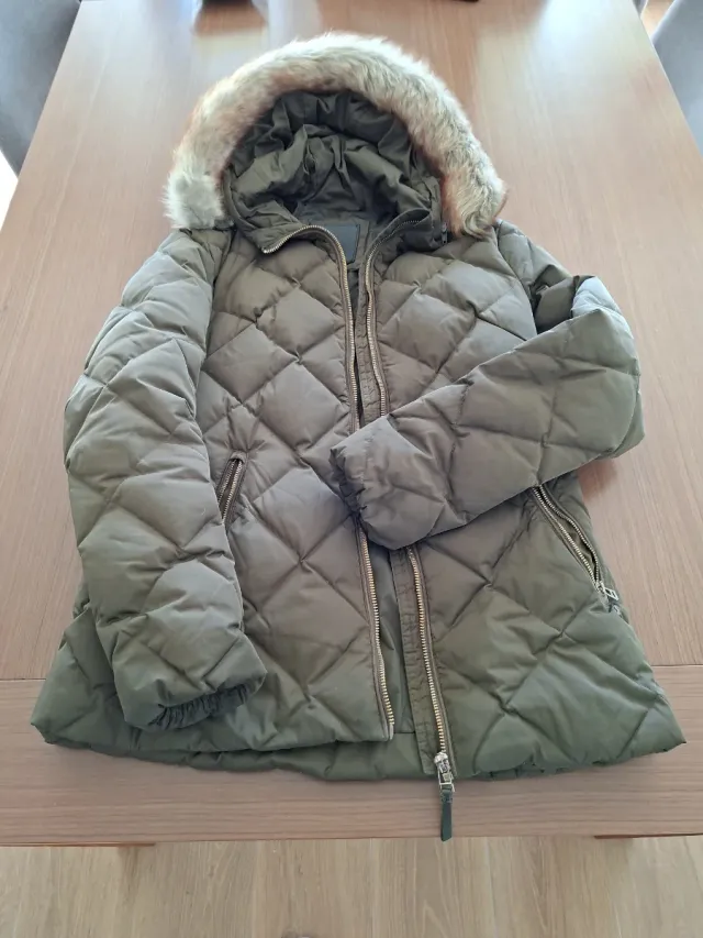 Plumífero verde oliva con capucha pelo desmontable