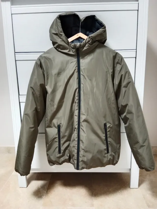 Detalles del productoPlumón para niño de la marca Mango, talla 13-14 años. Color caqui por un lado y negro por el otro, con capucha, cierre de cremallera y dos bolsillos laterales con cremallera.Se lo compré al final del invierno pasado (2024) pensando más bien en esta temporada (2025), pero cuando se lo he ido a poner le queda pequeño. Está nuevo, ya que se lo puse 3 ó 4 veces, lo lavé y lo guardé. El abrigo no pesa, pero abriga mucho ya que va acolchado por dentro. Lo vendo por 15€.