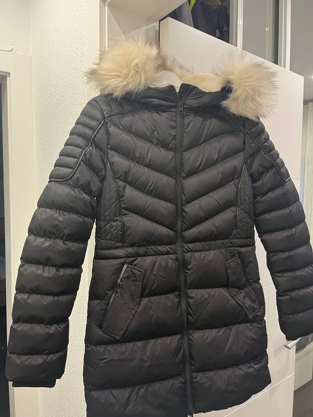 Plumón Norway Negro con Capucha y Pelo, talla S