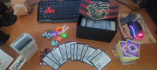 Detalles del productoVendo cartas varias de pokemon tcg, un deck de raichu alola/licanrock algo modificado, muchas energias, fichas, dados de daño i codigos sin usar para la app.