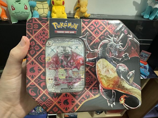 Pokémon Trading Card Game collector's tin with Charizard EX.