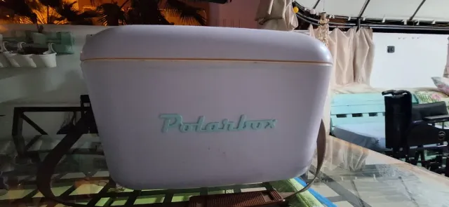Nevera portátil estilo vintage de la marca Polarbox. Ideal para picnics o excursiones. - Color blanco roto. - Asa de transporte. - Diseño retro.