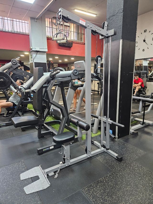 Detalles del productoMaquina fitness muy versátil con polea alta y baja, apta para dorsal, tríceps, biceps, remo, etc... con lo que se te ocurra. Es profesional, puede utilizar discos normales o olimpicos. OPORTUNIDAD , solo tres meses de uso. Medidas del producto