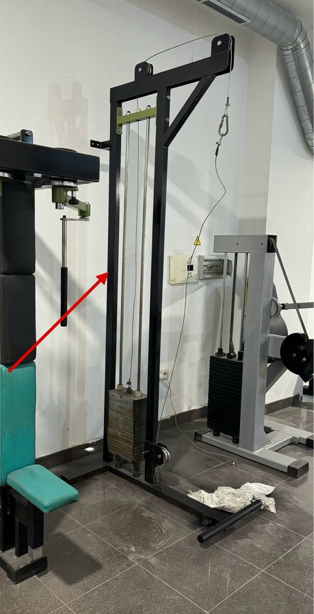 Polea de gimnasio Gervasport. Se encuentra en buen estado, sin necesidad de reparacion para su uso. - Polea alta. - Polea baja. - Apoyo de pies para remo bajo.