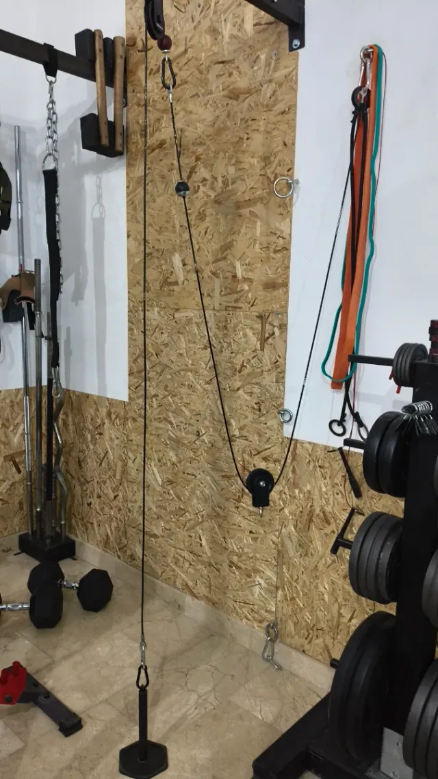 Detalles del productoSistema de polea para ejercicios de gimnasio en casa. Ideal para complementar tu rutina de entrenamiento.