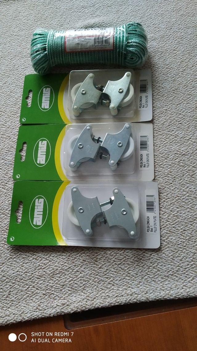 Seis poleas para tendedero de ropa y rollo de cuerda