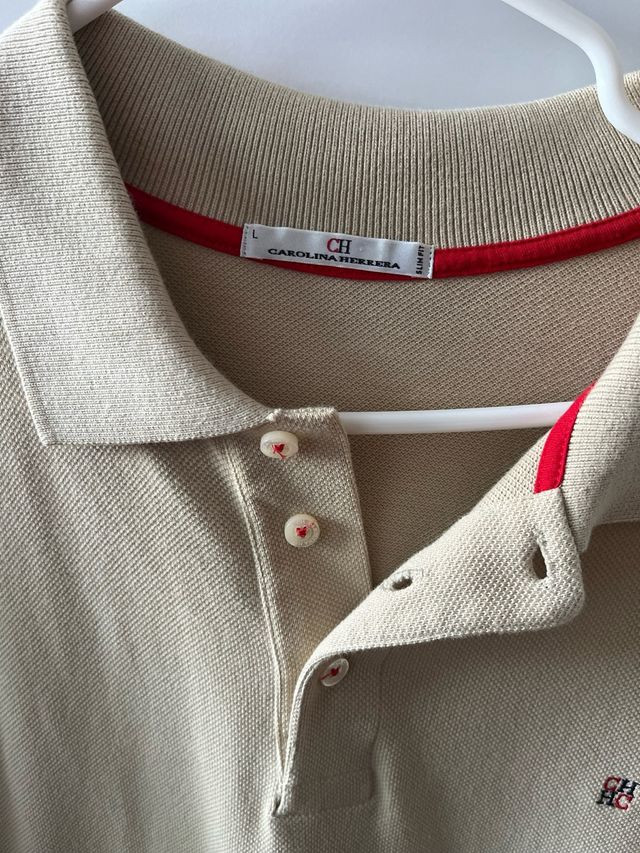 Polo Carolina Herrera Talla L Beige Slim Fit