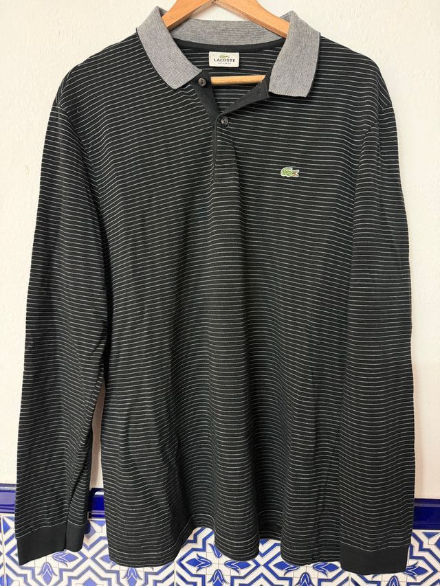 Polo Lacoste Rayas Gris y Negro Talla XXL