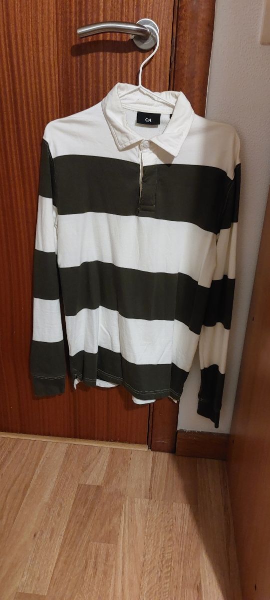 Polo manga larga rayas verde y blanco hombre