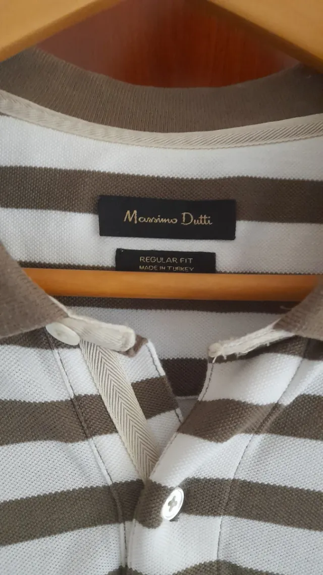 Polo Massimo Dutti Rayas Marrón/Blanco Talla M