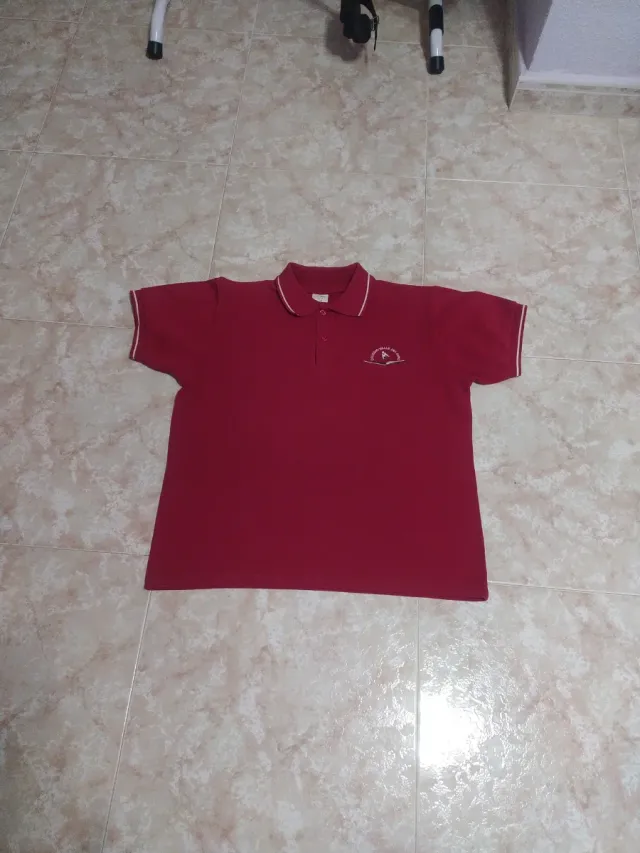 Polo talla P de color granate del colegio Valle del Miro. Muy buen estado - Talla P. - Cuello tipo polo con ribete blanco. - Logo bordado en el pecho.