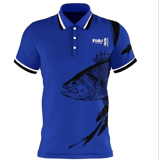 polo de la marca Yuki. Ideal para amantes de la pesca. - Diseño único con estampado de pez. - Color azul. - Tallas: M/L/XL/XXL/ - Manga corta.