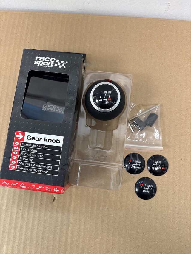 Pomo Cambio de Marchas Costura Roja con Gatillo Marcha Atrás Incluye Diferentes Esquemas de Velocidades para Personalizar