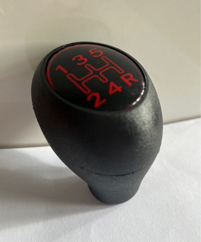 Pomo de cambio de marchas para Peugeot. - Diseño deportivo en color negro con detalles en rojo. - Indicación de las 5 marchas y la marcha atrás (R).