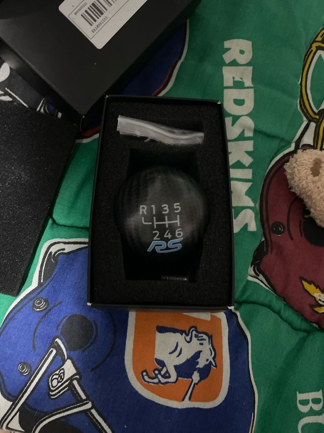Pomo de cambio con diseño deportivo y acabado en carbono. - Diseño con esquema de 6 marchas y R. - Logo RS en azul.