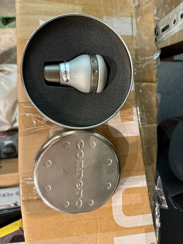 Pomo de cambio de diseño moderno y material resistente. - Acabado en color plateado y blanco. - Detalles metálicos. - Incluye tapa con logo.