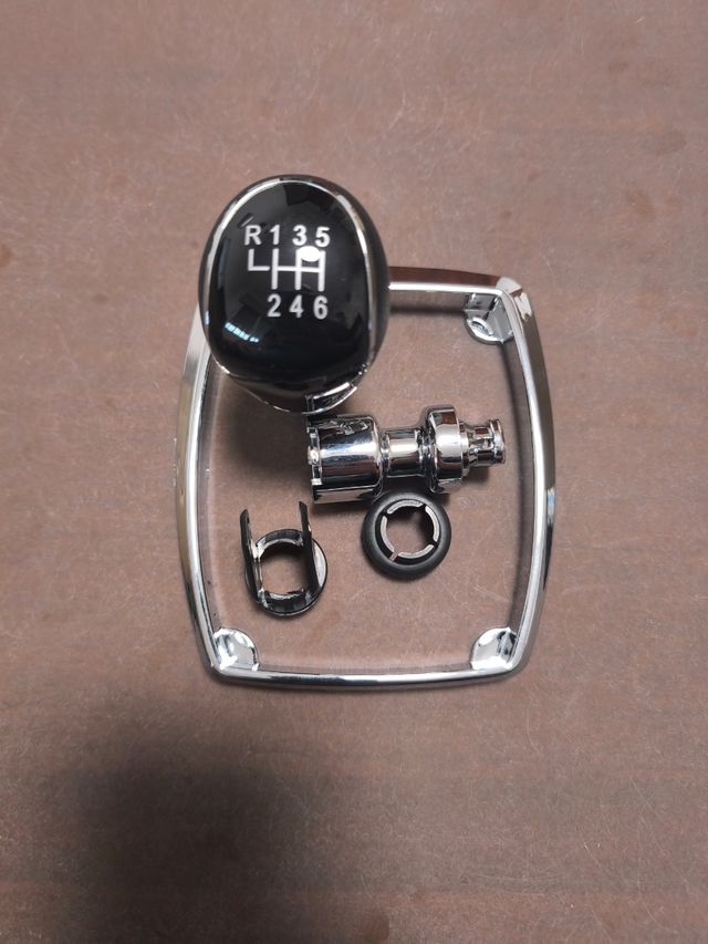 Pomo de marchas para Ford con diseño deportivo y acabado brillante. - Incluye el pomo, el fuelle y el marco cromado. - Compatible con varios modelos de Ford.