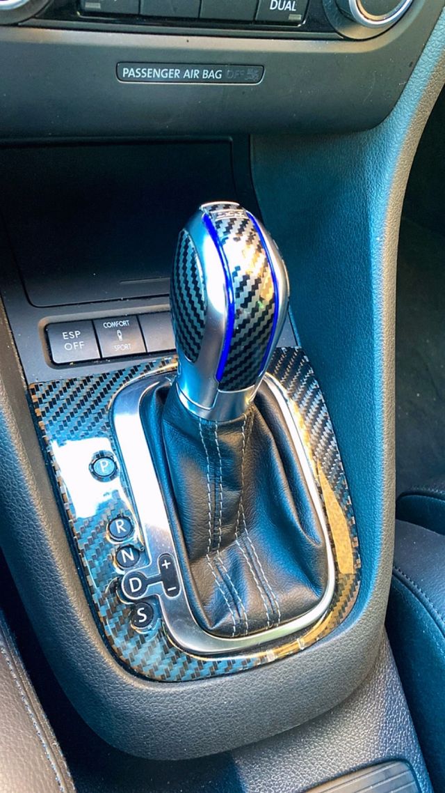 Detalles del productoPomo original cambio DSG con acabado en carbono y detalles en azul montado en VW Golf VI GTI, válido para cualquier VW Golf V y VW Golf VI.