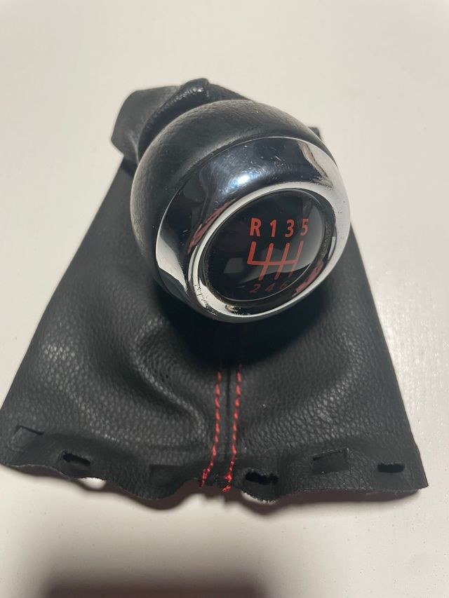 Detalles del productoPomo de palanca de cambios original para Mini R56 (2005-2013). Fabricado en cuero negro con costuras rojas y detalles cromados en perfecto estado, sin ninguna parte desconchada.