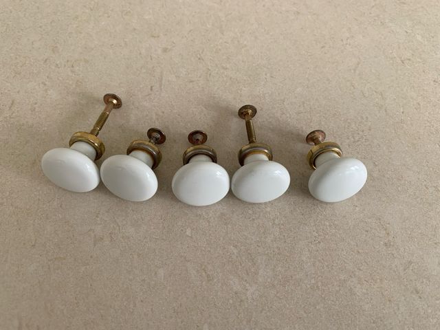 Detalles del productoConjunto de cinco pomos de porcelana blanca con un diseño ovalado y un toque clásico. Perfectos para dar un aire renovado a tus muebles.