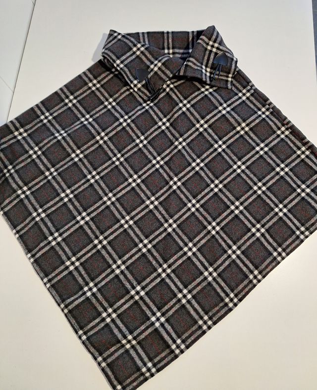 Poncho/Capa gris de cuadros mujer cuello cerrado