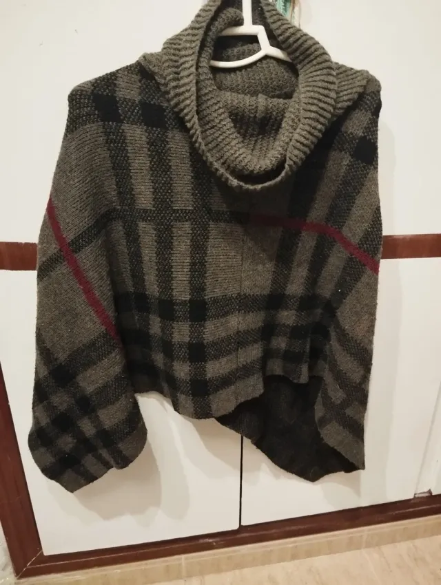Poncho de punto a cuadros