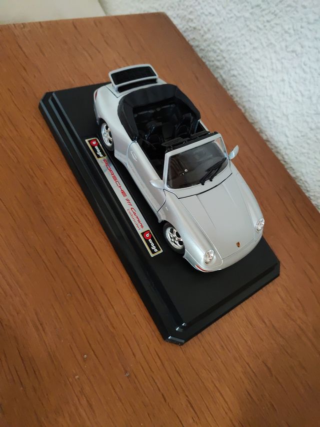 Detalles del productoPorche 911 Carrera cabriolet color gris marca Burago, escala 1/24, incluye peana pero no caja original.