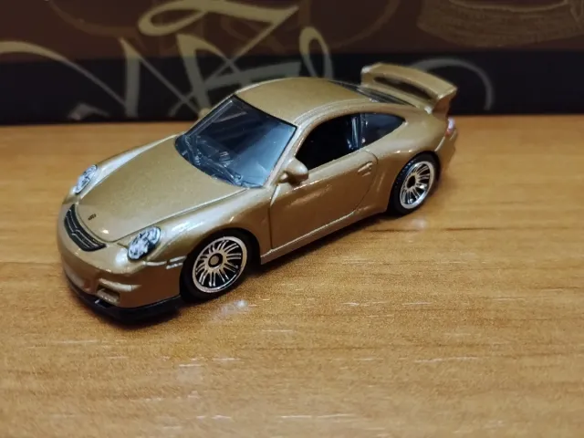 Réplica detallada del Porsche 911 GT3 en miniatura. Escala 1/64 - Color dorado metálico. - Diseño deportivo con alerón. - Ruedas plateadas con detalles.