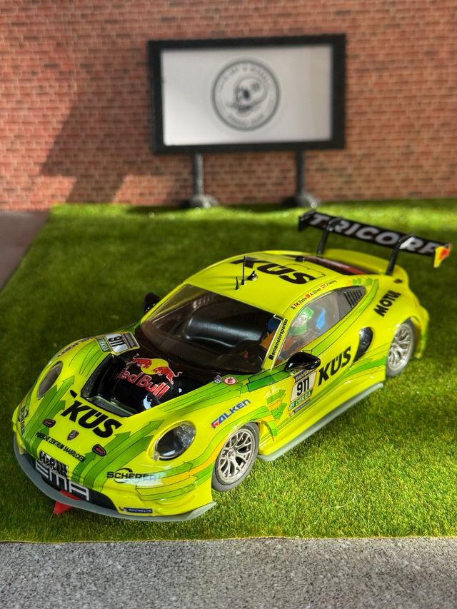 Detalles del productoPorsche 992 fluor KÜS de Scaleauto, nuevo a estrenar, sin uso y sin preparaciones. Replica del equipo Manthey EMA, segundo en las 24H de Nürburgring. Acabado impecable, detalles top y deco espectacular. Ideal para coleccionistas o fans del GT3.