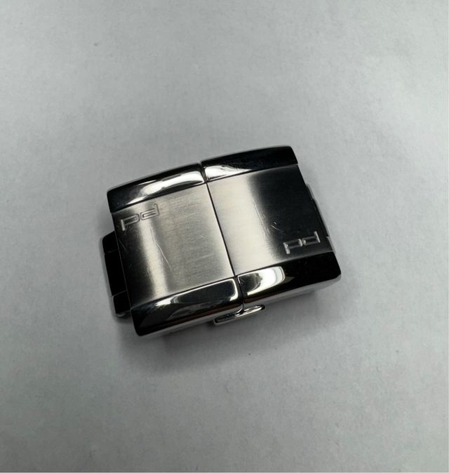 Detalles del productoCierre desplegable/deployante original de Porsche Design. Acero inoxidable, parte brillo y parte satinado, incluye tornillos para fijar la correa. En muy buen estado. Ver fotos.