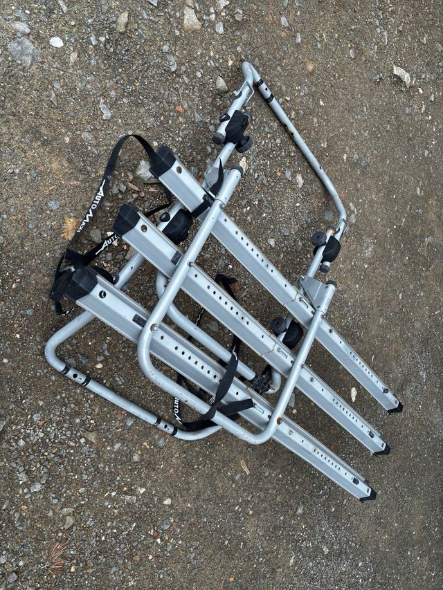 Detalles del productoPortabicicletas para 3 bicicletas, con uso pero totalmente funcional , tiene todos los enganches ,tornillos y soportes para anclarlo a la parte trasera del vehiculo, se vende con correas para mayor seguridad de las bicis, incluye cartel de señalizacion.