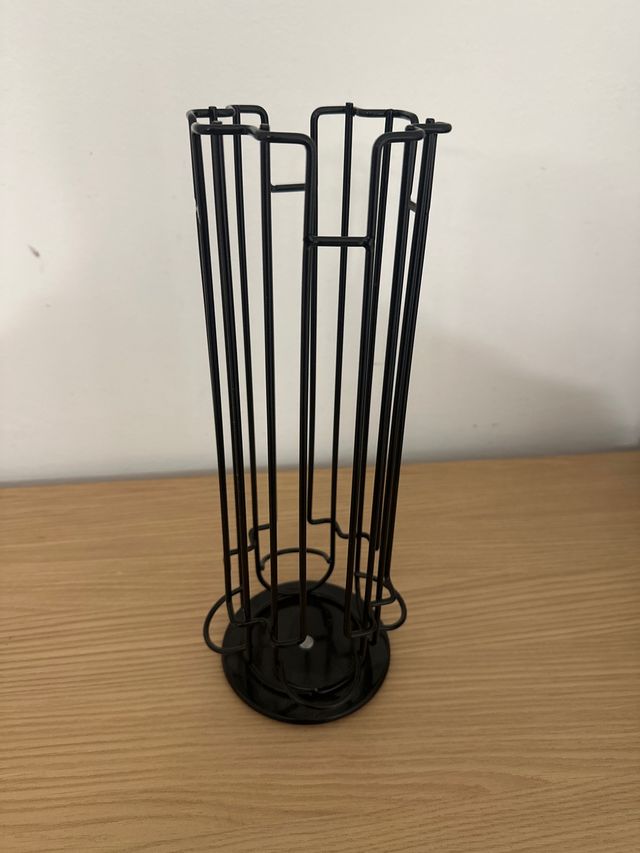 Detalles del productoOrganizador de metal negro para cápsulas de café.