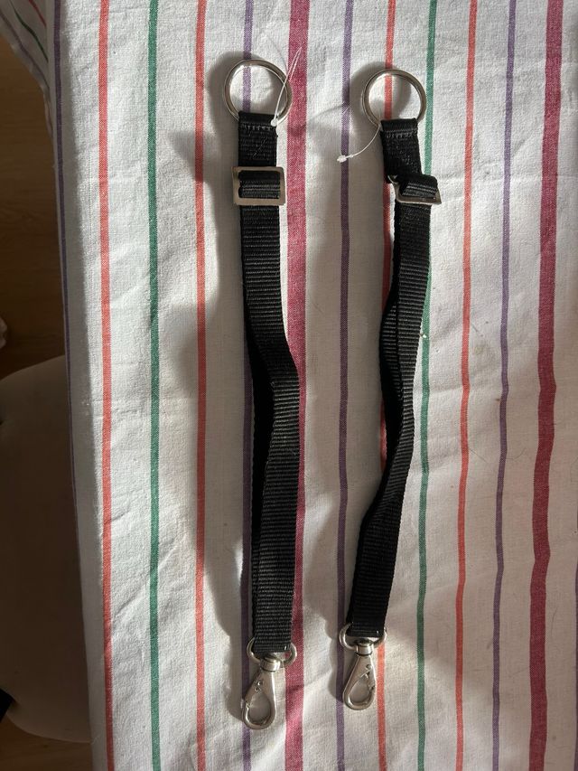 para enganchar en las barras de la cuadra o el box y poder colgar cubos, comederos, ....