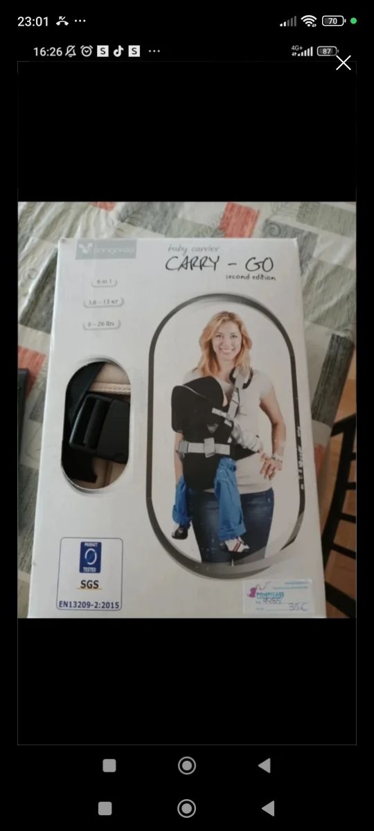 Detalles del productoVendo portabebés Carry-Go de segunda mano, en perfecto estado. Es una mochila portabebés cómoda y práctica para llevar a tu bebé.