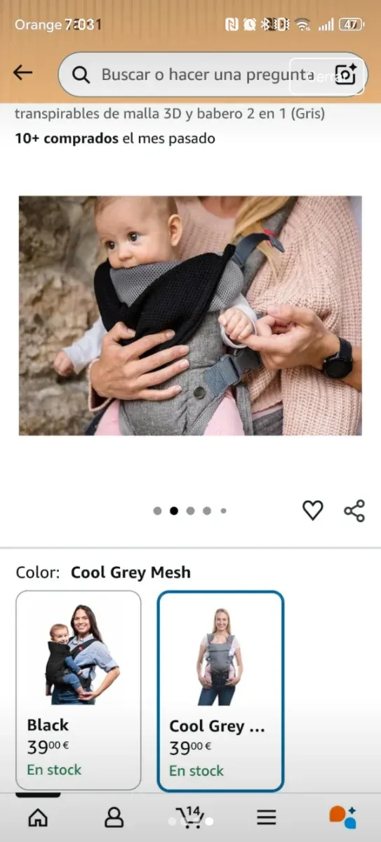 Portabebés Malla 3D Gris