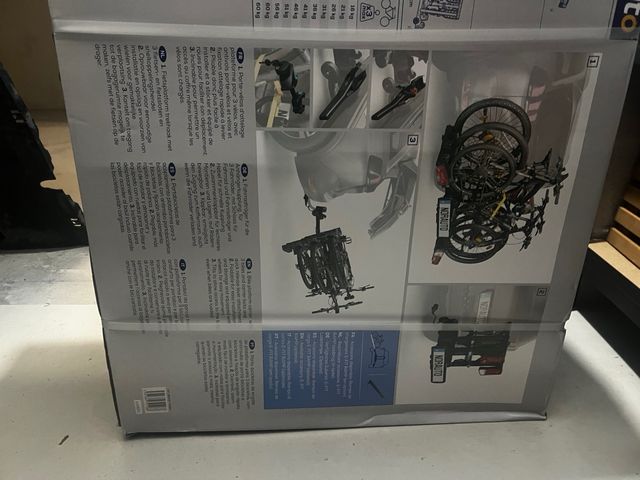 Portabicicletas para tres bicis eléctricas está nuevo sin desembalar fácil de manejar tiene ruedas fácil de plegar está todavía en la caja sin abrir