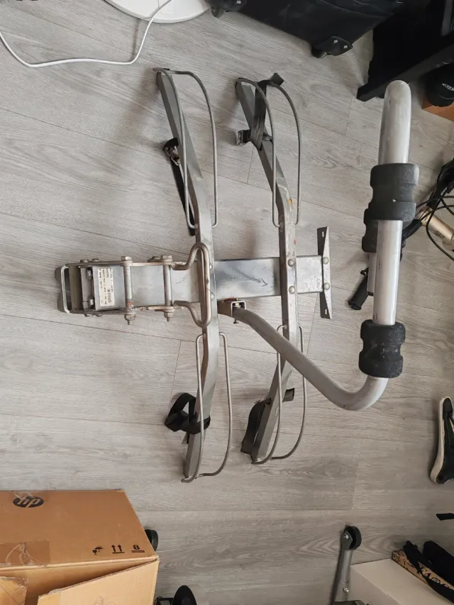 Detalles del productoPortabicicletas para bola de remolque de coche. Fabricado en metal plateado.