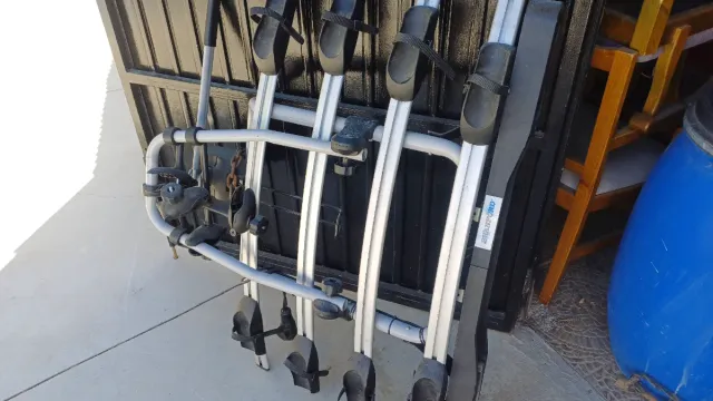 Portabicicletas de bola para coche. - Estructura metálica. - Soportes para bicicletas con correas de sujeción. - Cadena de seguridad.