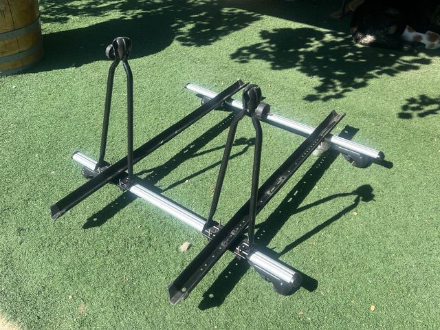 Detalles del productoPortabicicletas de techo para coche, ideal para transportar tu bicicleta de forma segura.