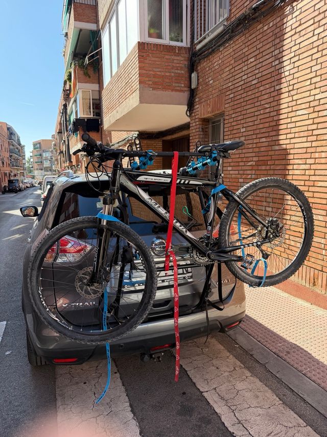Portabicicletas para coche de la marca Decathlon. - Diseñado para transportar bicicletas de forma segura. - Compatible con varios modelos de coche.