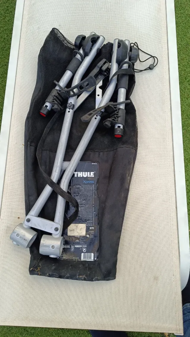 Portabicicletas plegable Thule Xpress. - Estructura de aluminio. - Incluye bolsa de transporte. - Correas de sujeción.