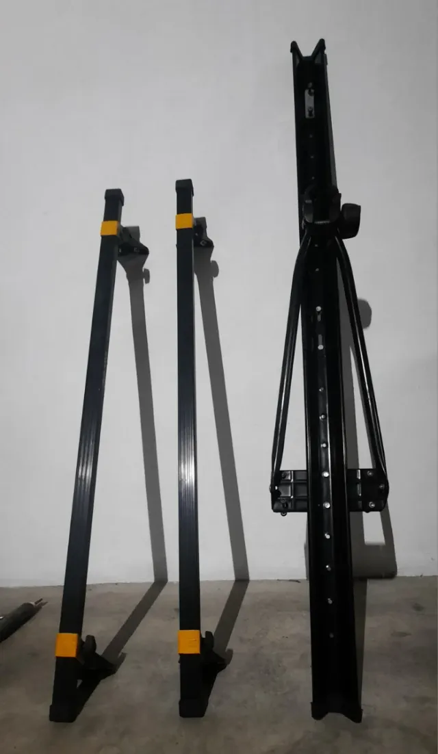 - Portabicicletas de color negro con detalles amarillos.