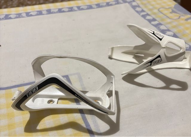 Dos portabidones para bicicleta, uno de la marca BBB y otro de la marca PRO. - Material de carbono. - Diseño ligero y resistente.