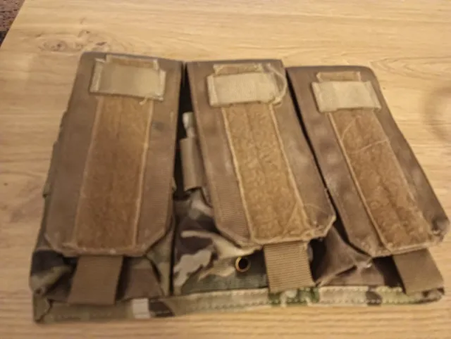Portacargadores táctico en camuflaje Multicam. - Tres compartimentos individuales. - Cierre con solapa de velcro. - Diseño modular.