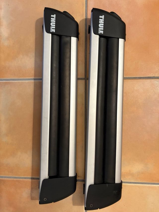 Portaesquís de la marca Thule para 3 pares de esquís: -55cm de longitud. -40cm espacio de carga -Cierre con llave (2 copias).