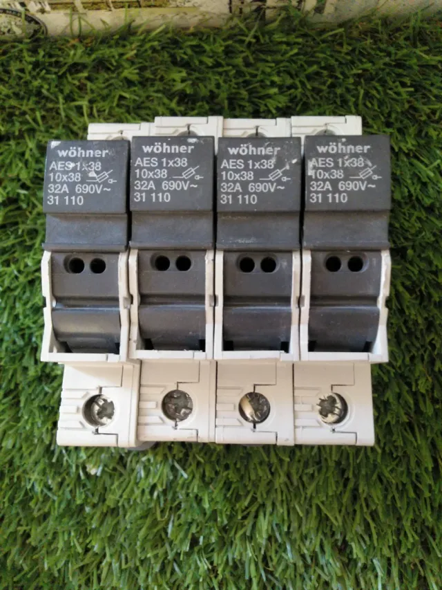 Se venden cuatro portafusibles Wöhner. - Modelo: AES 1x38 - Tamaño: 10x38 - Corriente nominal: 32A - Tensión nominal: 690V~