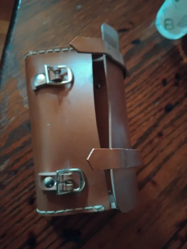 Detalles del productoPortaherramientas de cuero para bicicleta, ideal para llevar tus herramientas esenciales contigo.