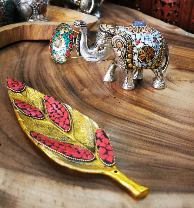 Portainciensos pluma dorada con incrustaciones